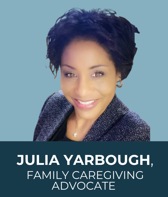 A multiple Emmy Award-winning broadcast journalist, Julia Yarbough has more than 25 years experience anchoring and reporting, and producing. Having served as a family caregiver to her aging and now deceased mother, Julia is passionate about raising awareness and educating others to the realities facing family caregivers and advocating for improved services.